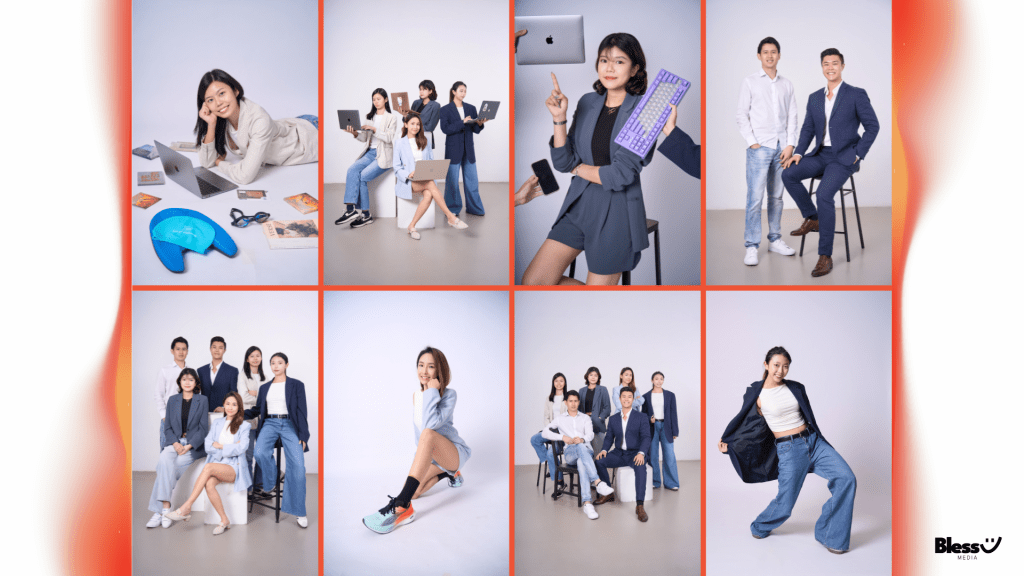- Studio lighting setups tailored to your brand aesthetic.
